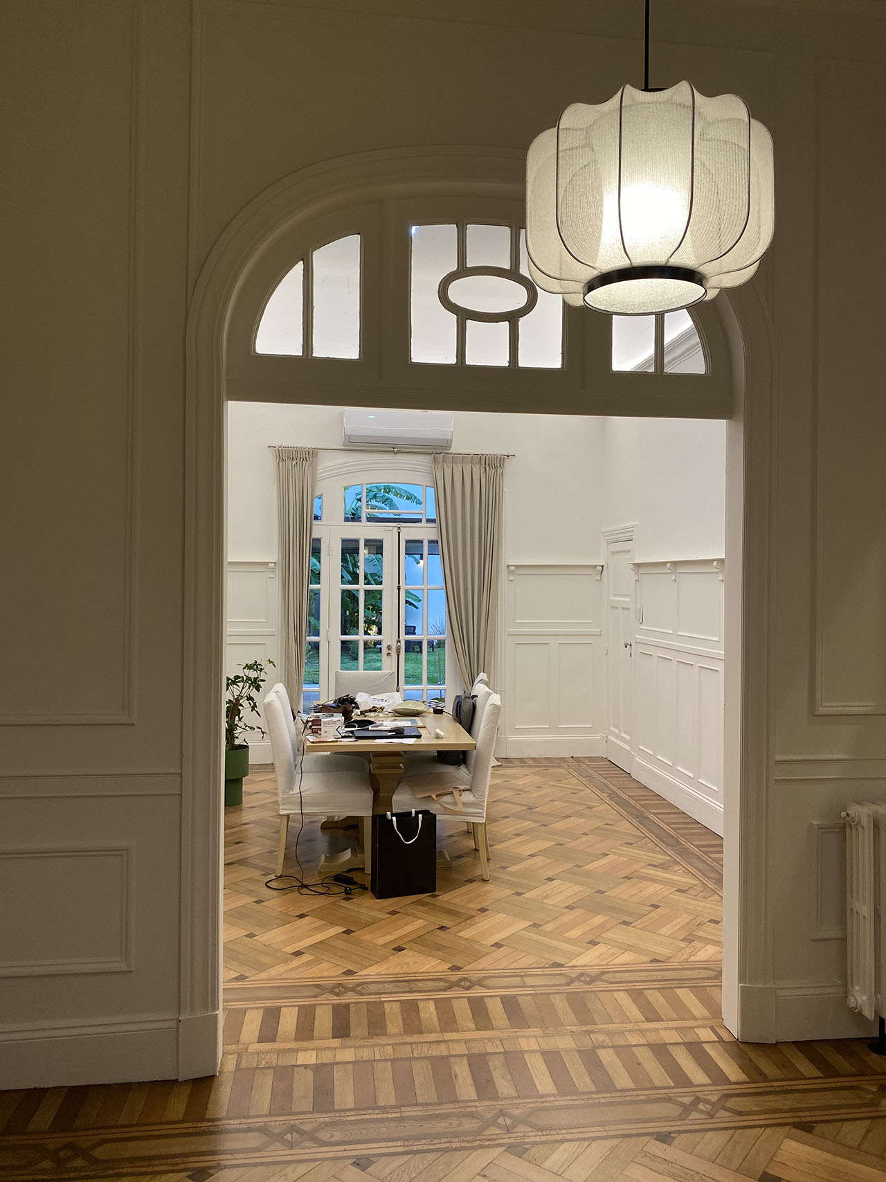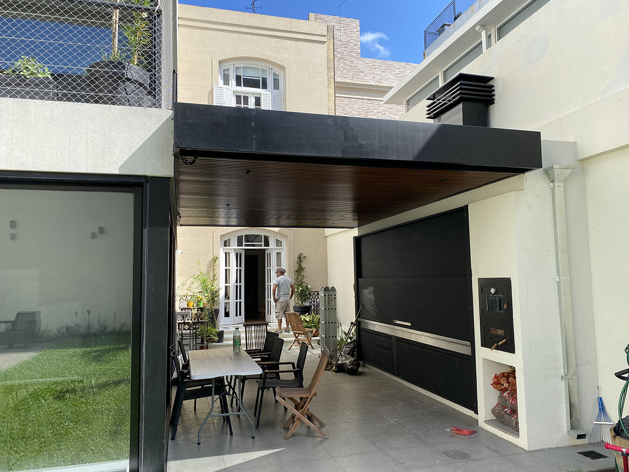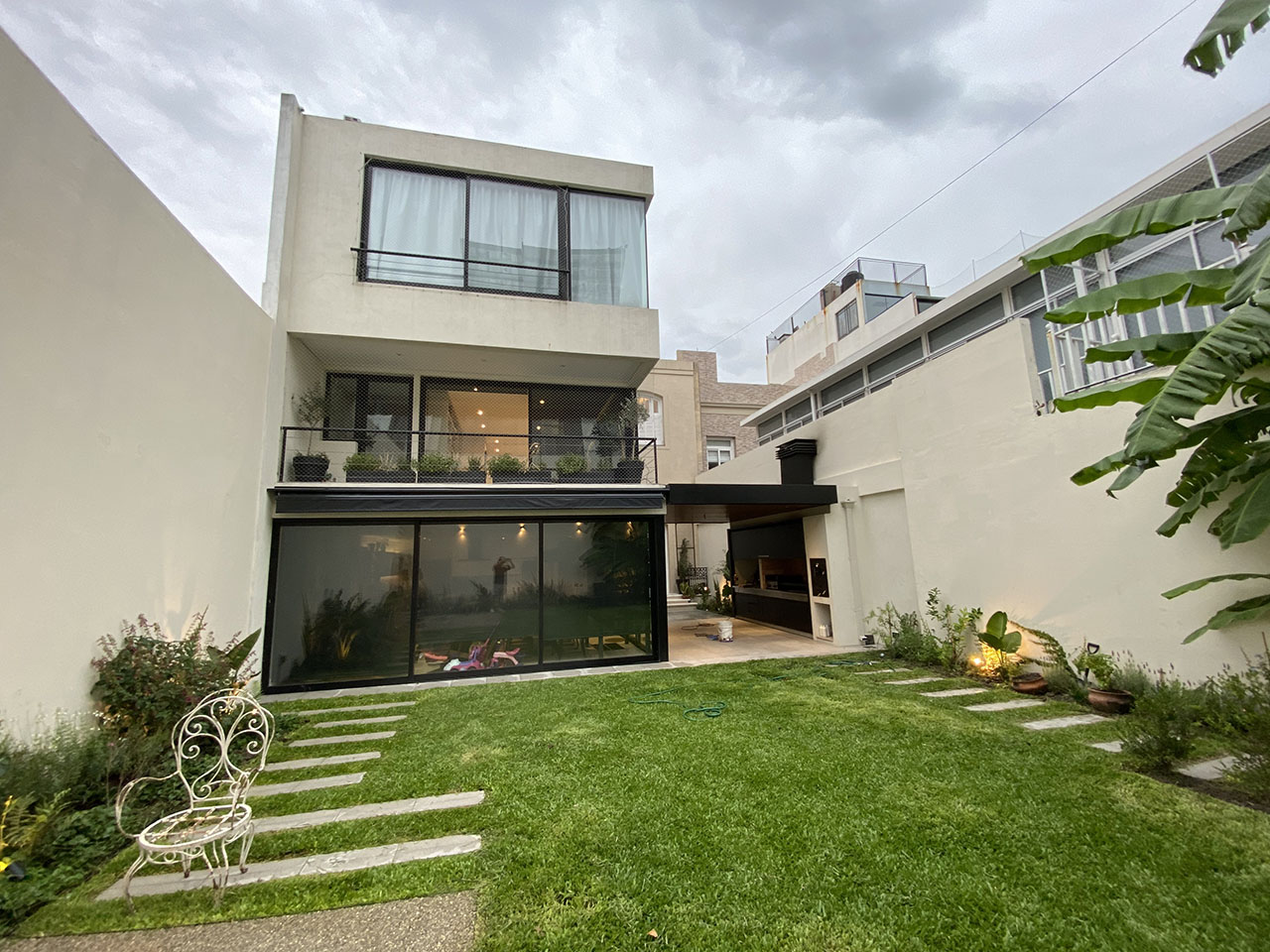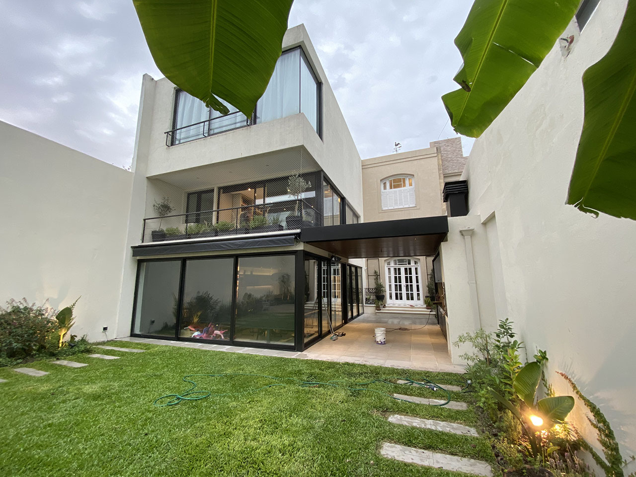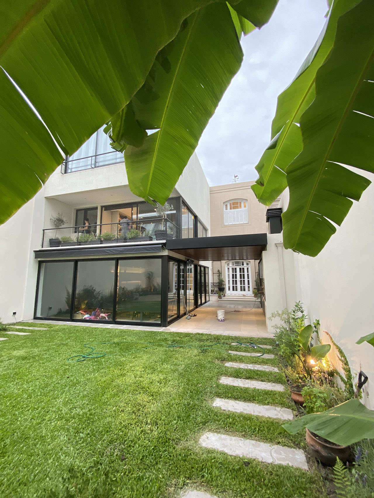 Una casa de 1920 se amplia y se adapta a las diferentes funciones de una familia numerosa moderna. Se amplia agregando funciones y se reforma el area exterior a travez de pergolas y jardineras. Se actualizan los banos y la cocina como parte del interiorismo. Tambien se le hace paisajismo.